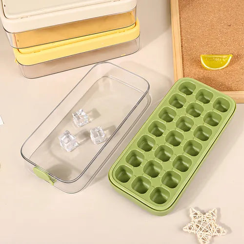 Diseño vertical y tipo prensa: Estas bandejas cuentan con un diseño vertical que optimiza el espacio en el congelador. Además, su mecanismo tipo prensa permite liberar los cubos de hielo fácilmente, sin necesidad de tocarlos directamente, lo que garantiza una mayor higiene.