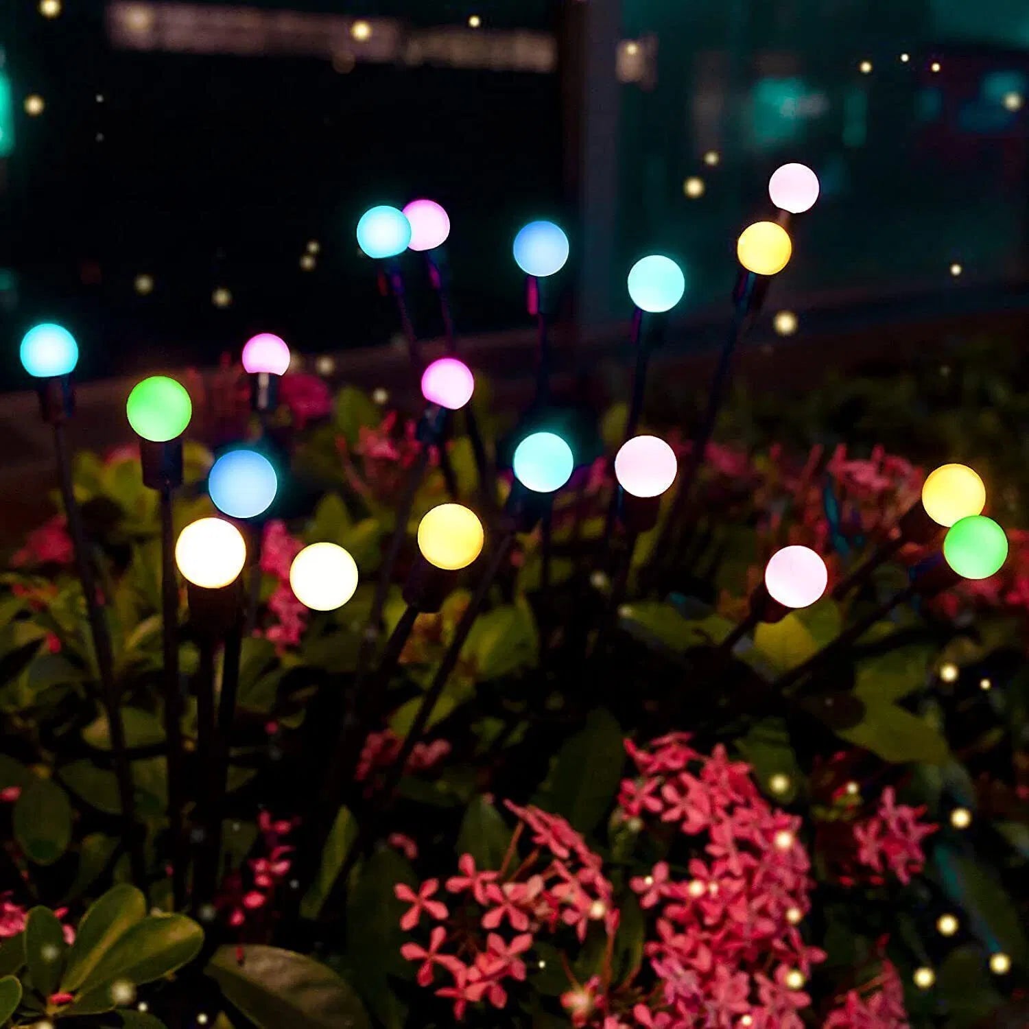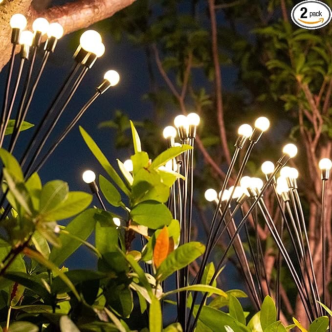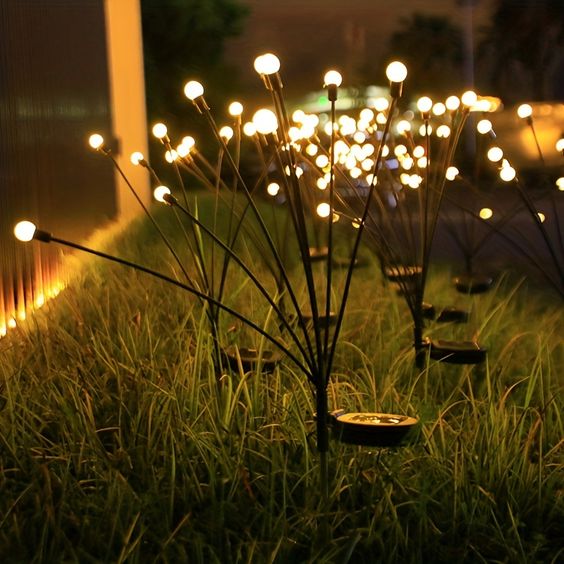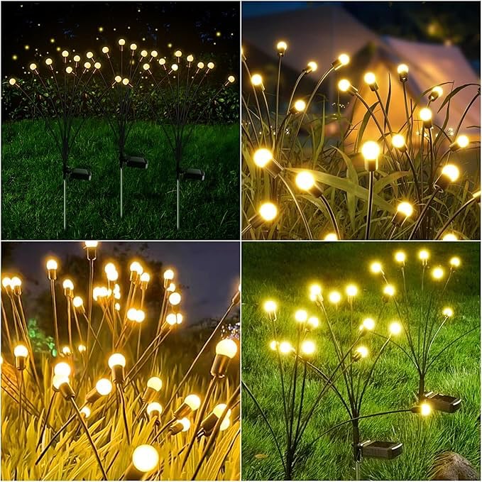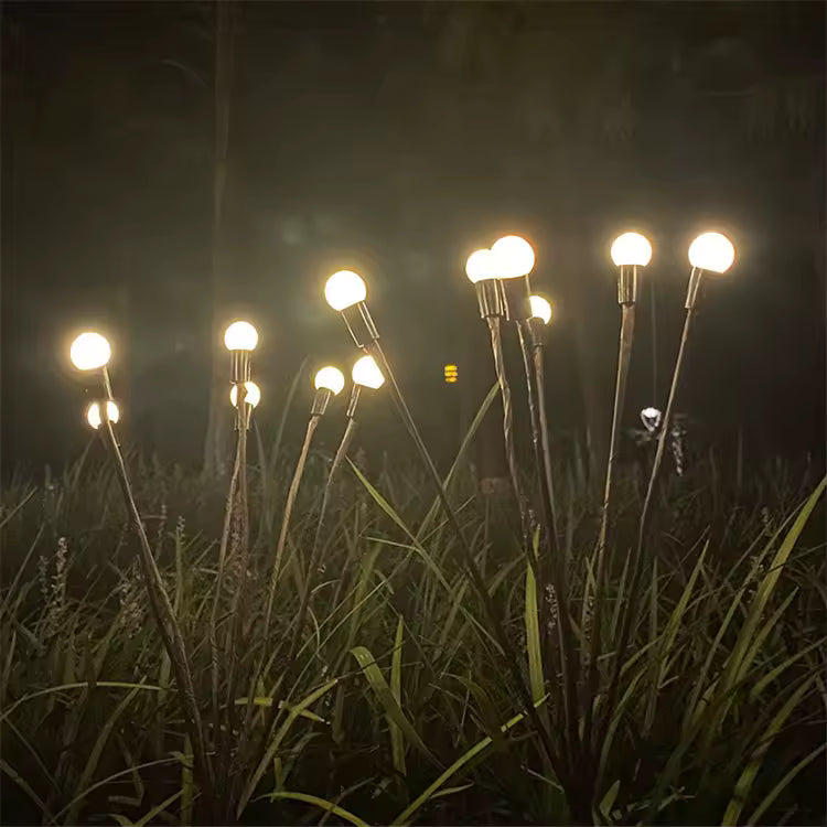 Transforma tus espacios exteriores con nuestras Estacas Luciérnaga Solar. 8 bolitas de luz cálida que danzan automáticamente al anochecer, creando un ambiente mágico y encantador.