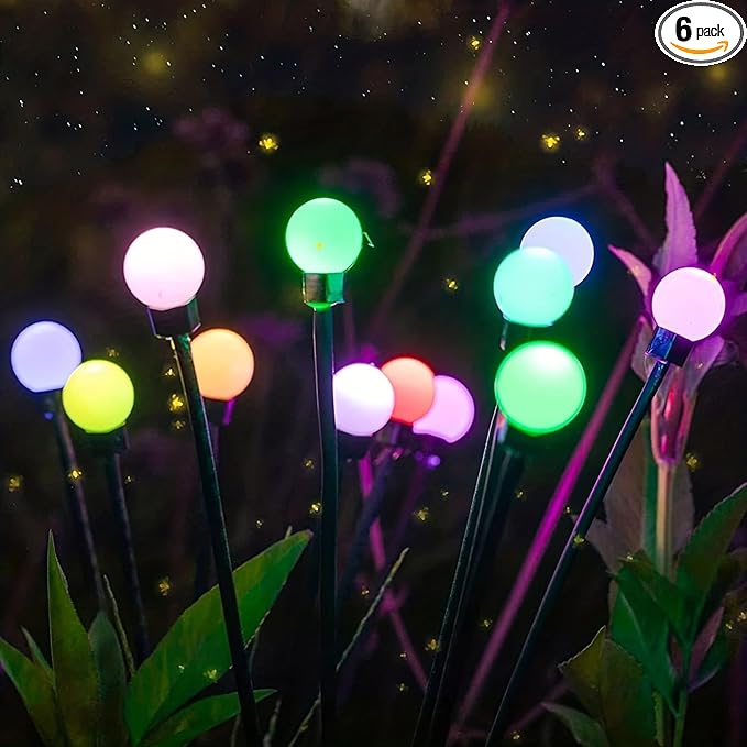 Transforma tus espacios exteriores con nuestras Estacas Luciérnaga Solar. 6 bolitas de luz multicolor que danzan automáticamente al anochecer, creando un ambiente mágico y encantador.