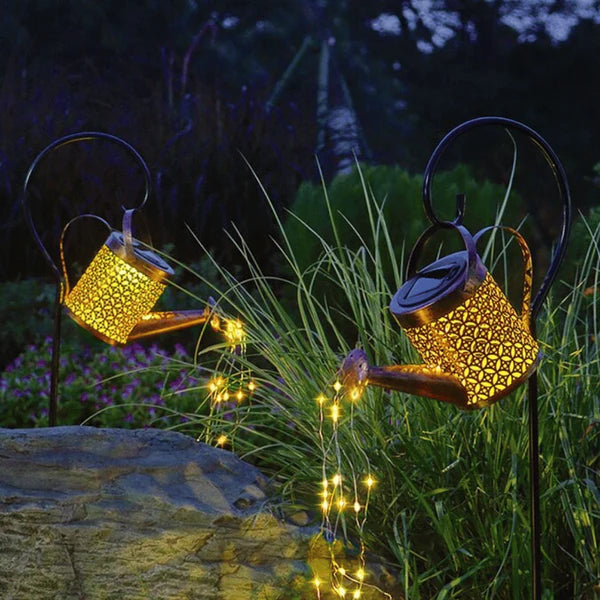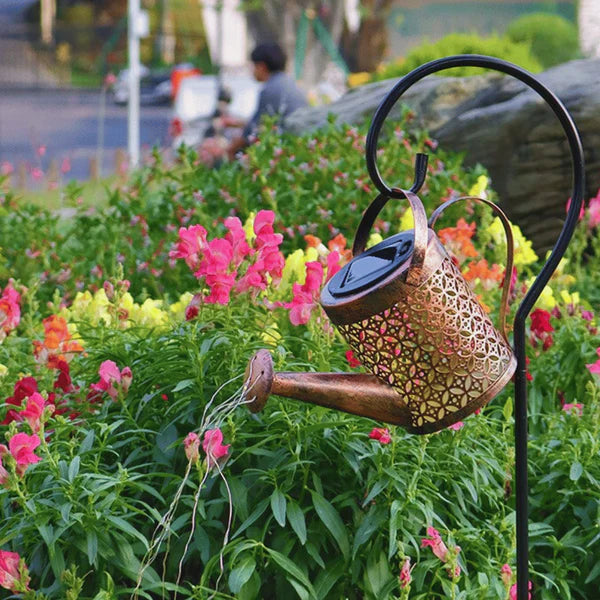 Transforma tu jardín en un oasis de luz y tranquilidad con nuestra estaca solar de regadera iluminada!