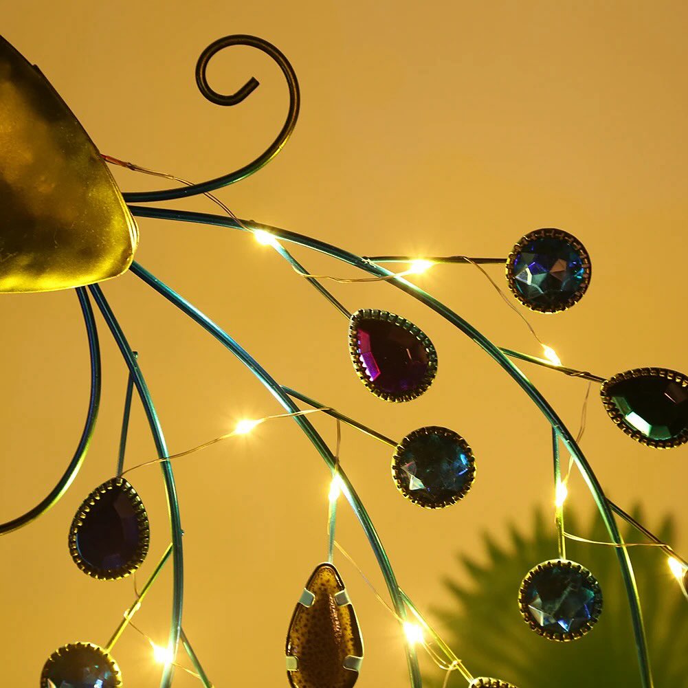 ¡Transforma tu jardín en un oasis de luz y color con nuestra estaca decorativa de pavo real solar!