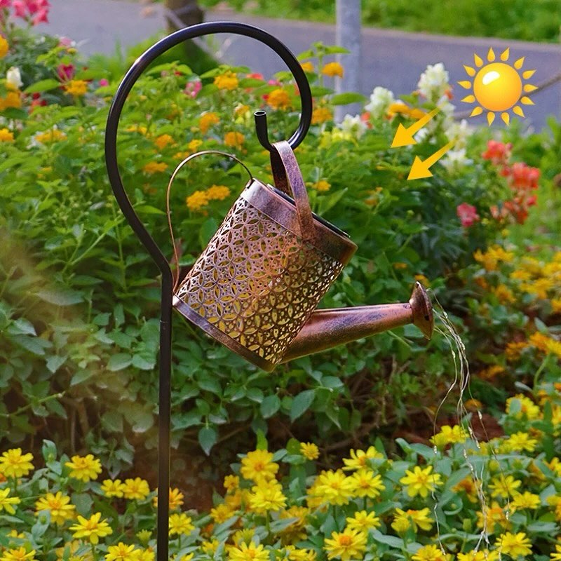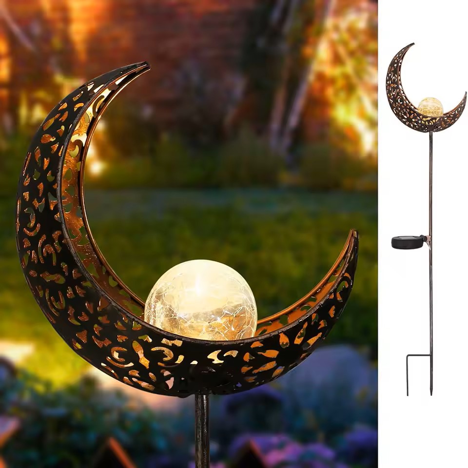 Descubre nuestras estacas solares de 83 cm de metal con diseños únicos de Sol, Luna, Estrella y Regadera Solar.
